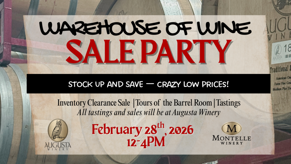 Due to a recent tech issue, all sales and tastings for the event will now take place at Augusta Winery. We appreciate your flexibility and can’t wait to welcome you there for a great day of wine! 🍷