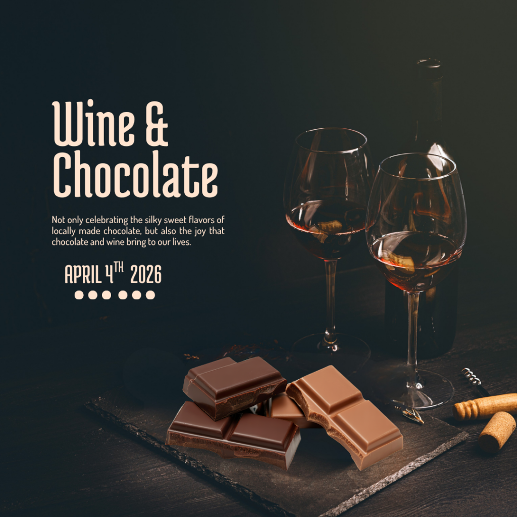 Join us April 4th for a wine & chocolate experience you won’t want to miss! For just $15, enjoy four perfectly paired wines alongside handcrafted chocolates from Wanderlust—each combo thoughtfully curated to bring out the best in every sip and bite. 🕛 Reservation Times: 12PM, 1:30PM, 3PM ⏱ 45-minute guided tasting 🎟 Only 10 seats per time slot — spots are limited!