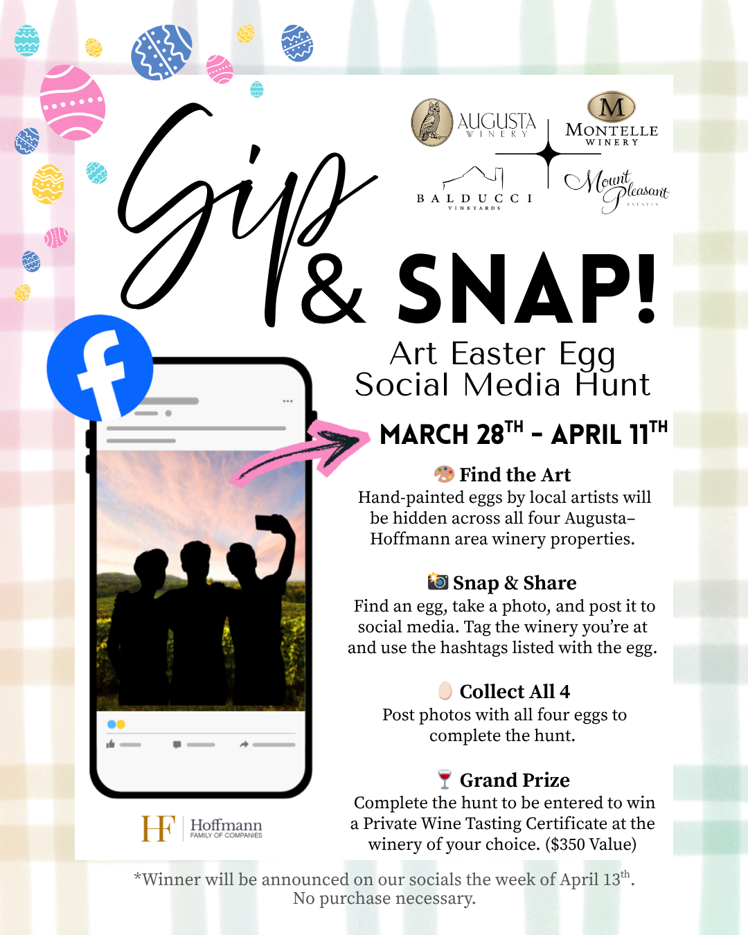Sip, Snap & Hunt Your Way Through Augusta Wine Country!  Get ready for a fun, interactive Easter adventure across all four Augusta wineries! From March 28th – April 11th, hand-painted […]
